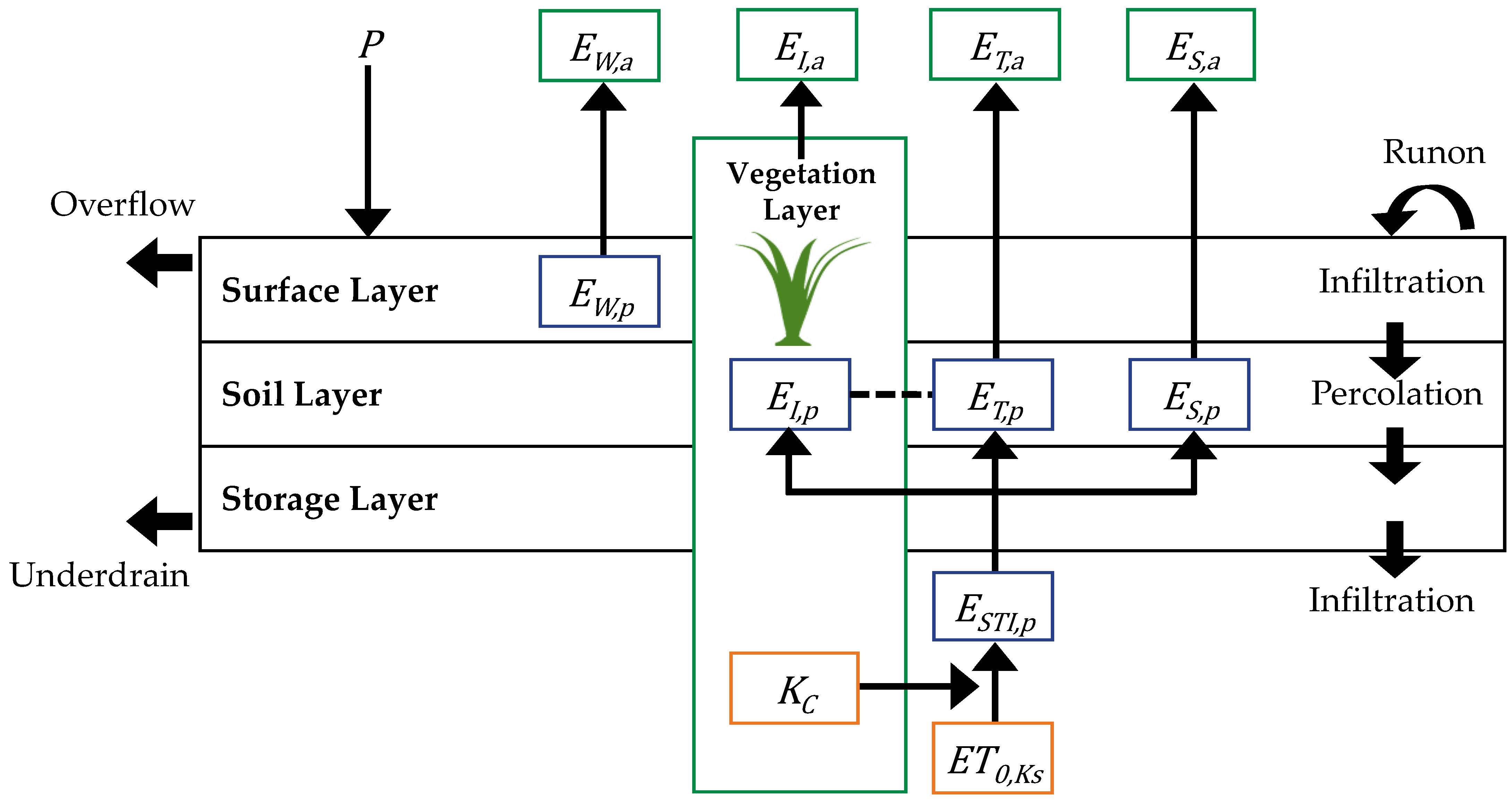 Das neue Teilmodell SWMM-UrbanEVA beseitigt solche Defizite im Verdunstungsmodell von SWMM (US EPA). Es ist in der Lage, verschiedene Vegetationstypen standortgerecht und komponentenscharf (Interzeptionsverdunstung, Transpiration, Evaporation) abzubilden. Die Wechselwirkungen des Systems Boden-Pflanze-Atmosphäre sowie die Beschattung durch Gebäude oder Bäume werden realitätsgerechter integriert. Maßnahmen der blau-grünen Infrastruktur können demnach explizit berücksichtigt werden.