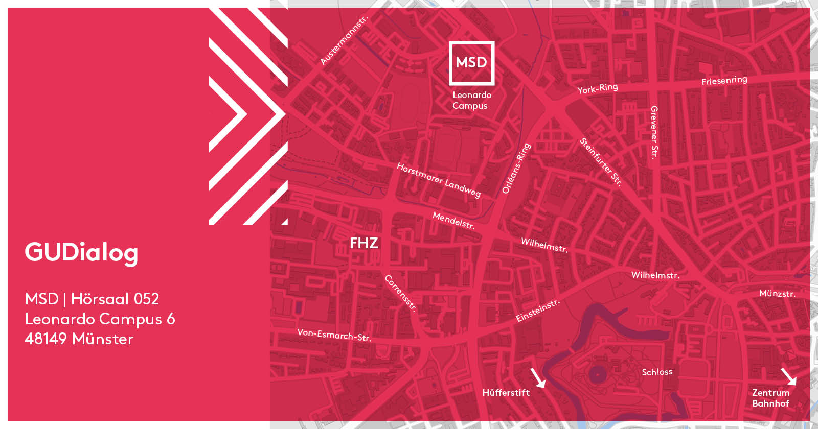 Der Veranstaltungsort wird jeweils im Rahmen der Einladung zum GUD Dialog bekannt gegeben. Der Eintritt ist frei.